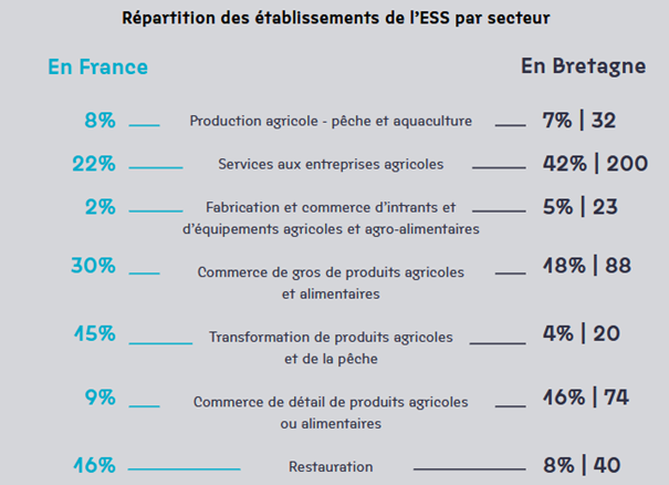 Le secteur agricole et alimentaire représente aujourd’hui 13% des ETP de l’ESS (contre 10% en France) à travers les coopératives, les associations et les groupements d’employeurs.