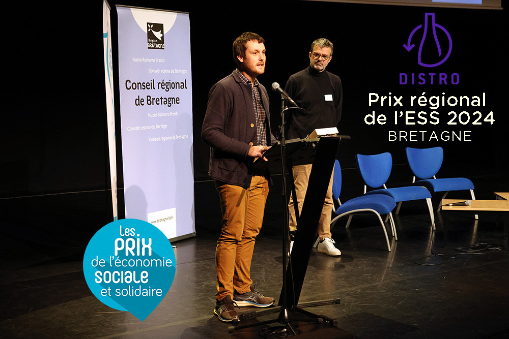 Le prix régional breton a été remis le 19 décembre à l’occasion de la Conférence régionale de l’économie sociale et solidaire qui se déroulait de 14h à 17h15, à Saint-Martin-des-Champs près de Morlaix, au Centre Culturel Le Roudour. C’est Michel Pier Jézéquel, Président de la Cress Bretagne, qui a remis le Prix régional à Uisant Créquer, Président de Distro.