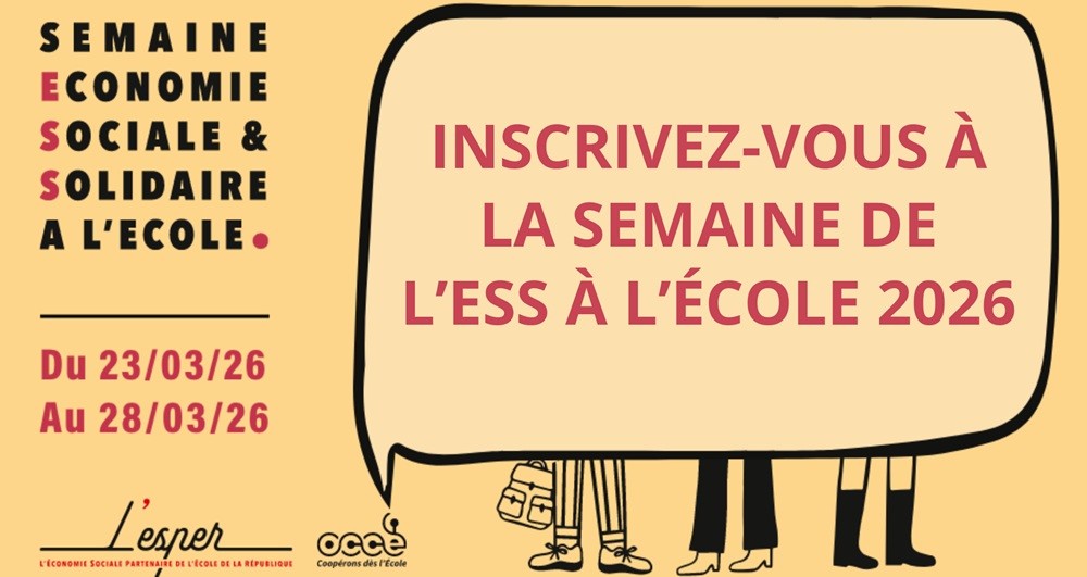Acteurs et actrices de l’ESS, faites découvrir aux élèves de la maternelle au lycée, les principes de l'Économie Sociale et Solidaire : la démocratie, la durabilité, la solidarité, la coopération à l’occasion de la Semaine de l’ESS à l'École 2026, du 23 au 28 mars !